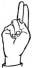 На ћирилици написано СИМОНА БЕТЕГАЛО састоји се из 14 слова [?]. Исписано ћириличном једноручном азбуком за глувонеме:
